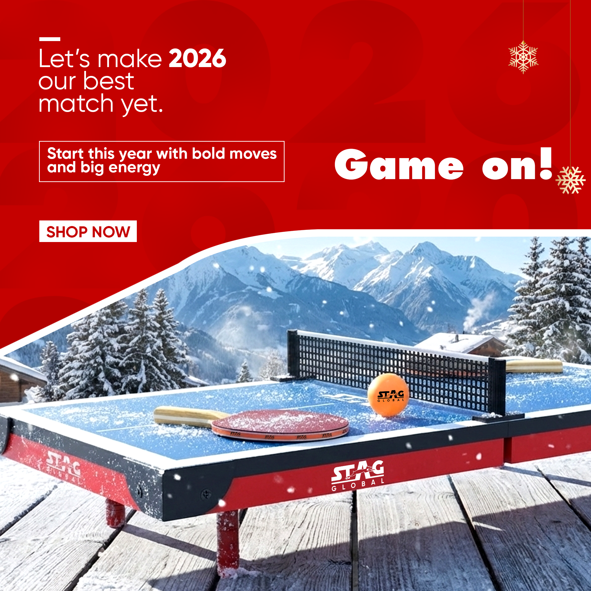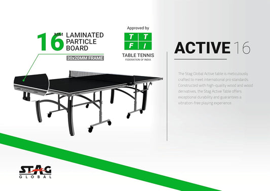 STAG GLOBAL Active Series Table Tennis Table With 2 Racket, 6 Balls, Clamp Net, 1 Cover