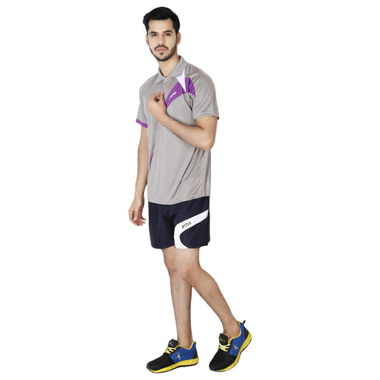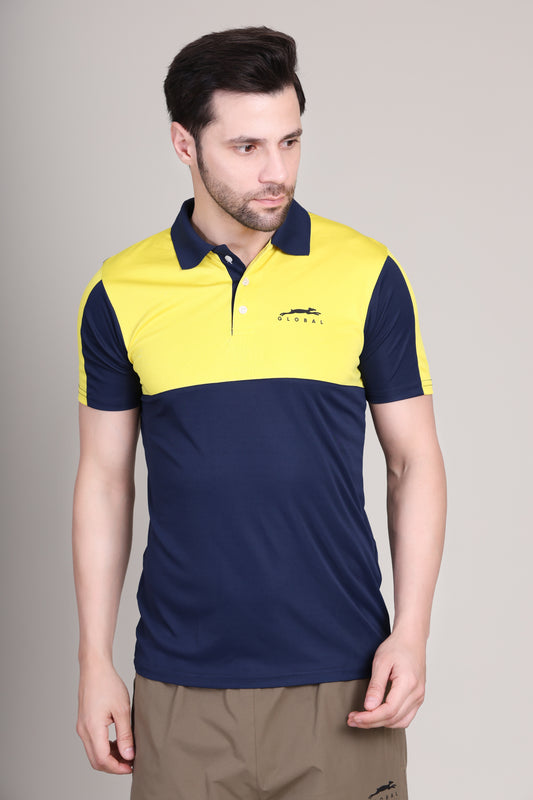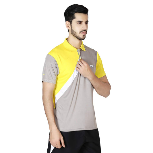 STAG GLOBAL Shell Grey & Yellow Men's Athletic Fit Polo T-Shirt | Solid Sportswear for Active & Casual Use