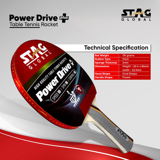 STAG GLOBAL Power Drive+ Table Tennis Racket | ITTF Approved | High Spin | Speed & Control Paddle