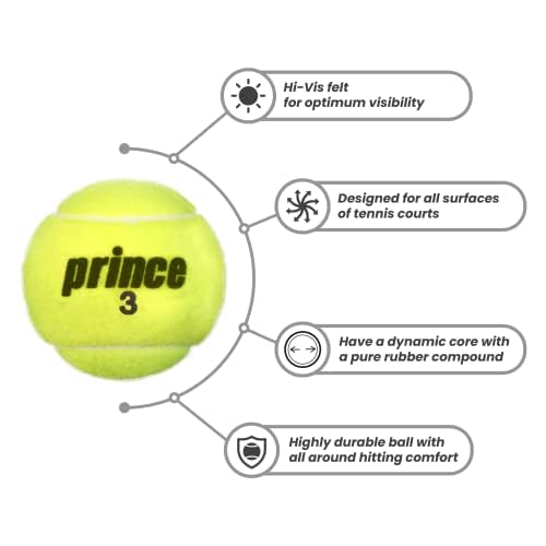 STAG GLOBAL Prince Prince NX Tour Pro Tennis Balls | ITF Approved Tennis Ball - Pack of 3 (Yellow)