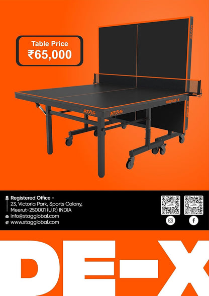 STAG GLOBAL 1000 DE-X Table Tennis Table Full Size Professional Table with 1 Table Cover, 2 TT Rackets, 6 Balls, 1 Clamp Net