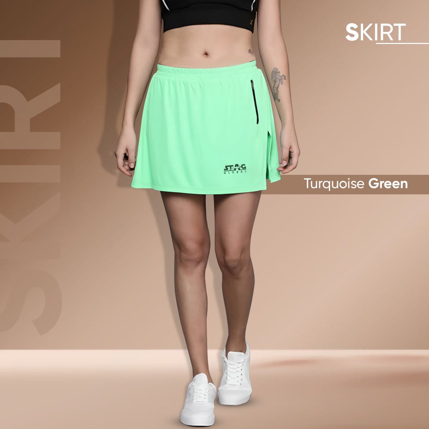- STYLISH & FUNCTIONAL DESIGN: With a chic mini length and sleek turquoise green finish, this skirt blends performance and fashion. A discreet zipper pocket adds function, giving you a place to safely store small essentials.