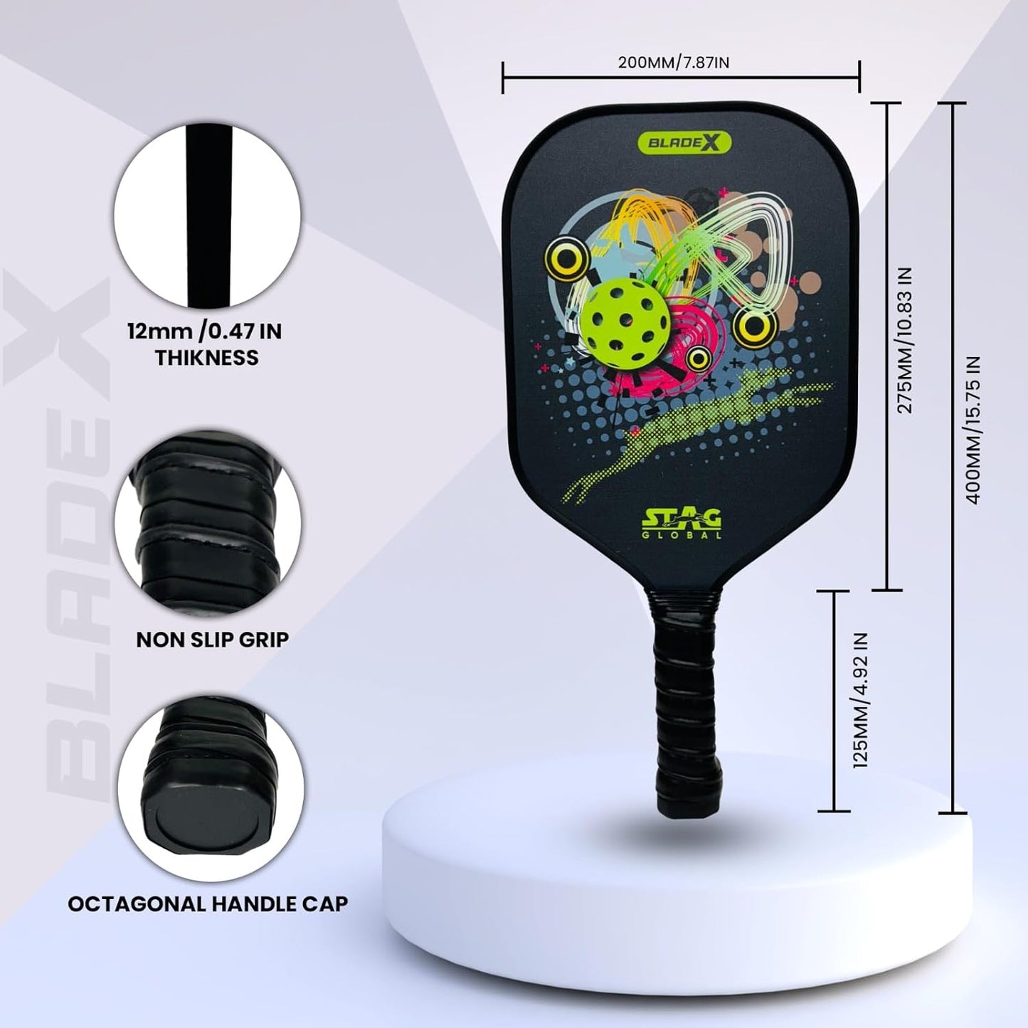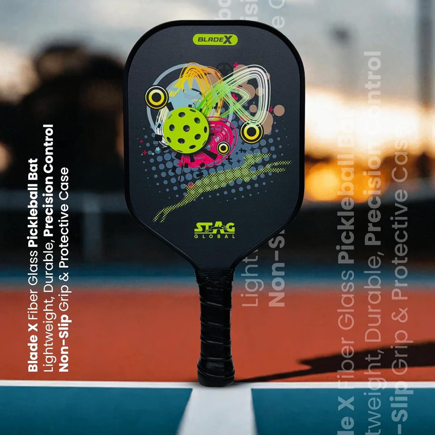 STAG GLOBAL Blade X Fiber Glass Pickleball Bat 12 mm | Non-Slip Grip & Protective Case | Vegan Leather Case With 3 Outdoor Pickle Balls