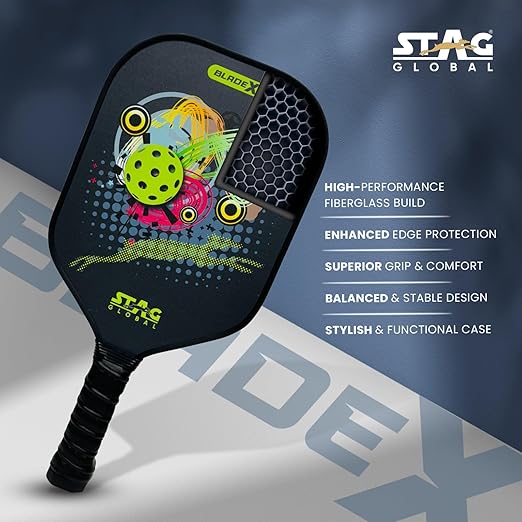 Experience top-tier performance with the STAG GLOBAL Blade X Pickleball Paddle. Built with high-performance fiberglass, it features enhanced edge protection, a superior grip, and a balanced design for stability. Comes with a stylish and functional case—perfect for tennis, racquetball, and pickleball enthusiasts.