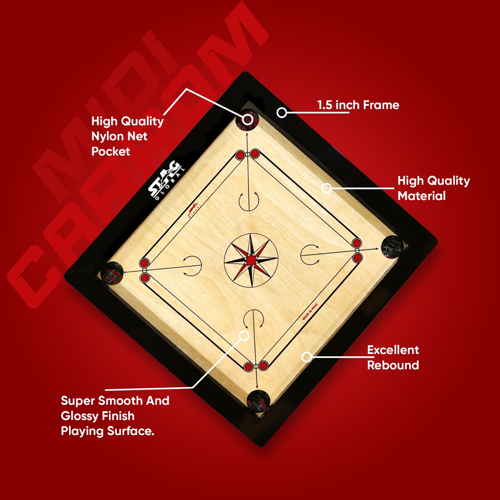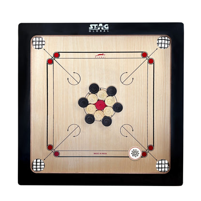 STAG GLOBAL Midi Carrom Board Set | 20x20 Inch with Coins | Striker & Powder | Smooth Finish