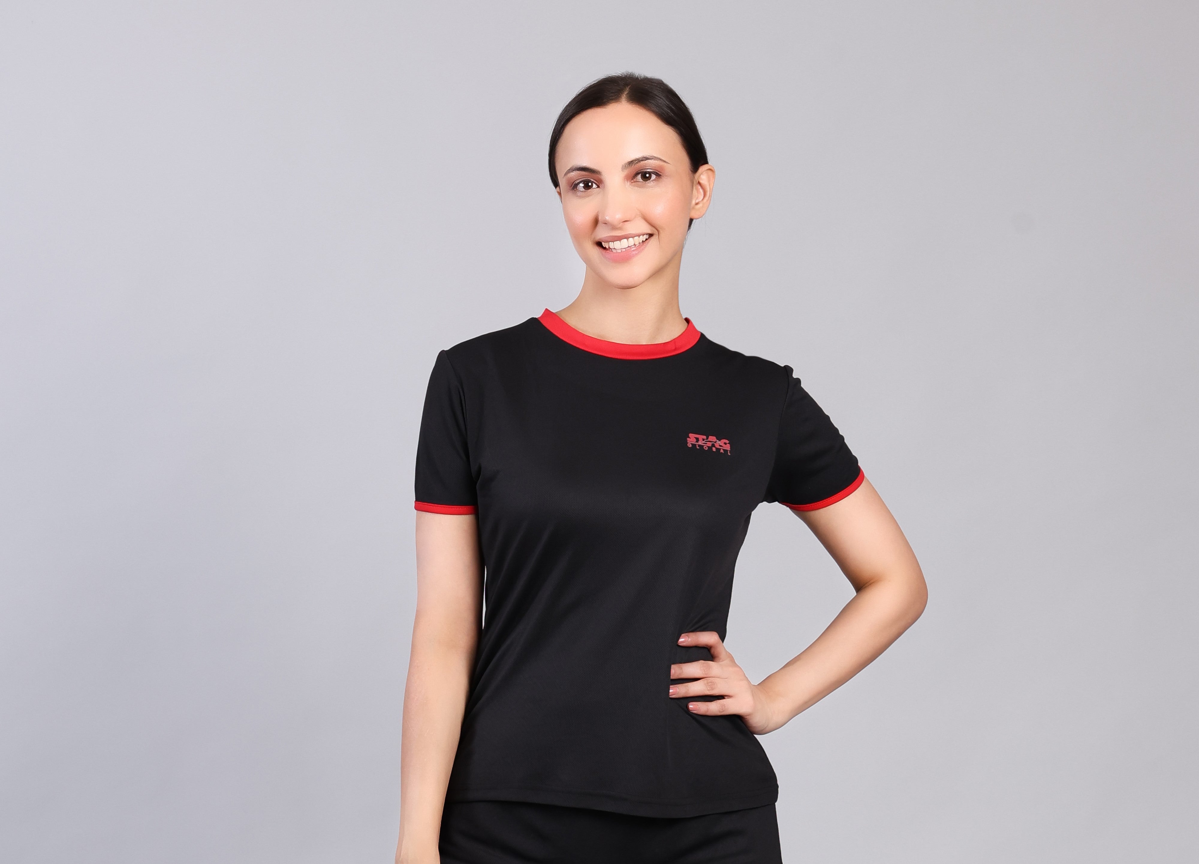 STAG GLOBAL Crest Women's Sports T-Shirt | Black/Pink | 100% Polyester | Lightweight & Quick Dry