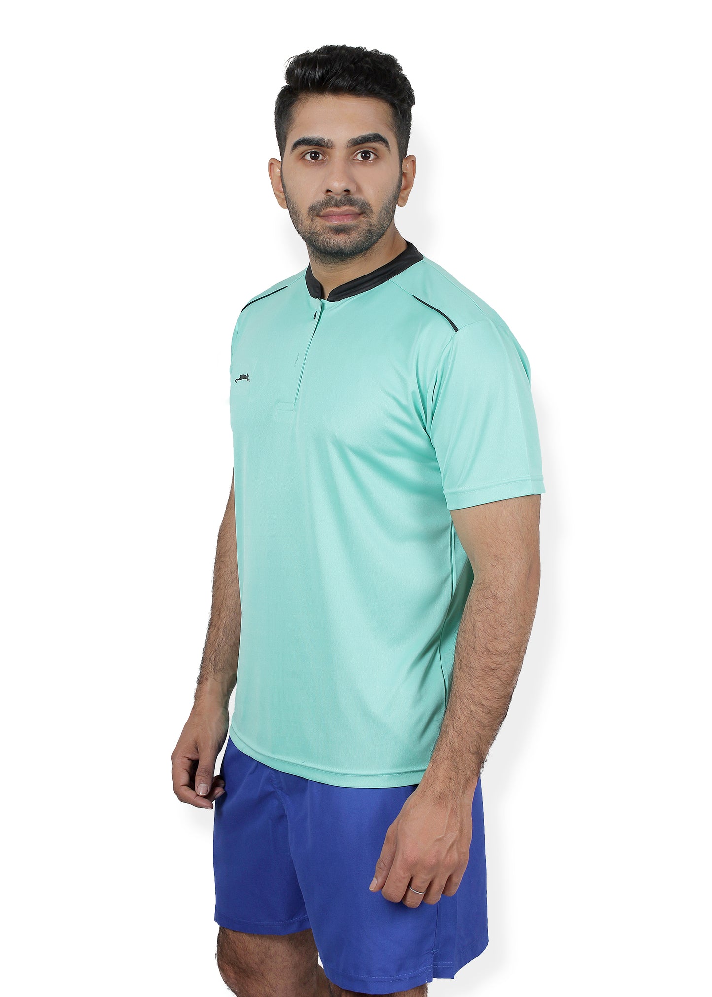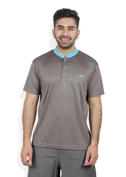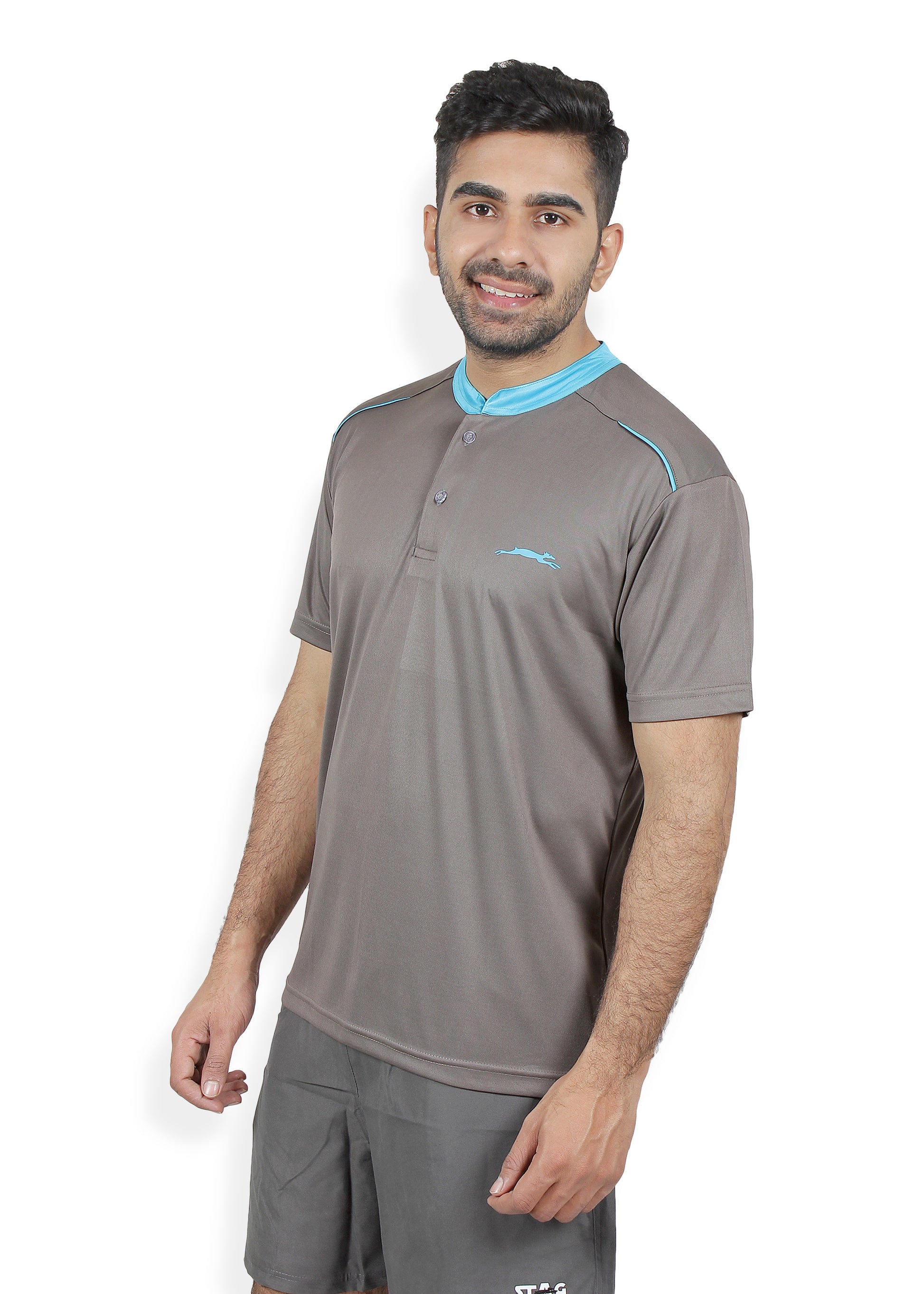 THE STAG GLOBAL High Neck Athletic T-Shirt crafted from 100% polyester, featuring a Polo collar, half sleeves, and a Athletic fit. Designed for performance and ease of care—it’s machine washable—making it ideal for active use and effortless style :