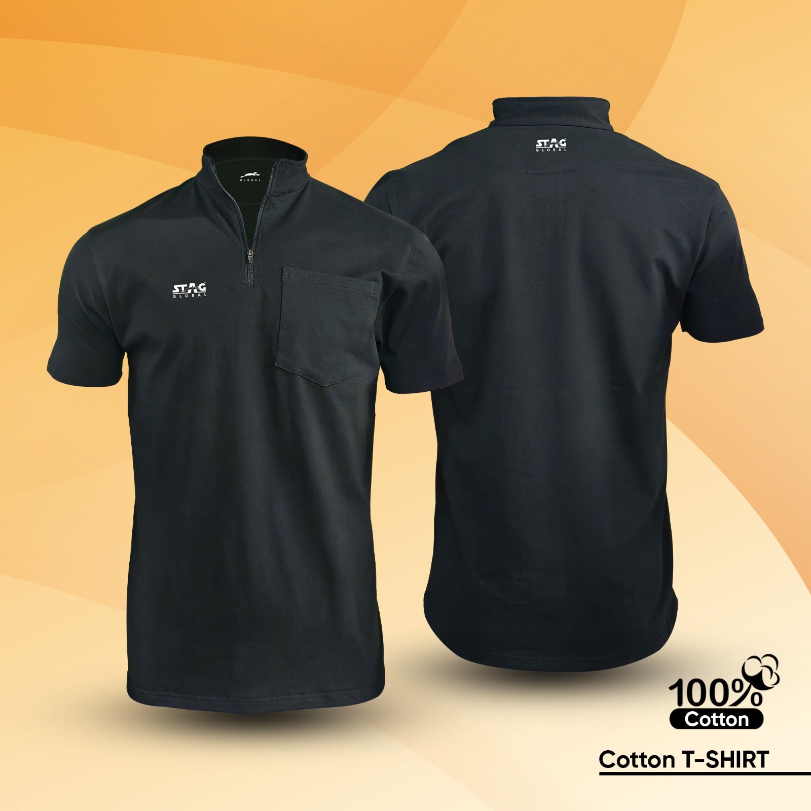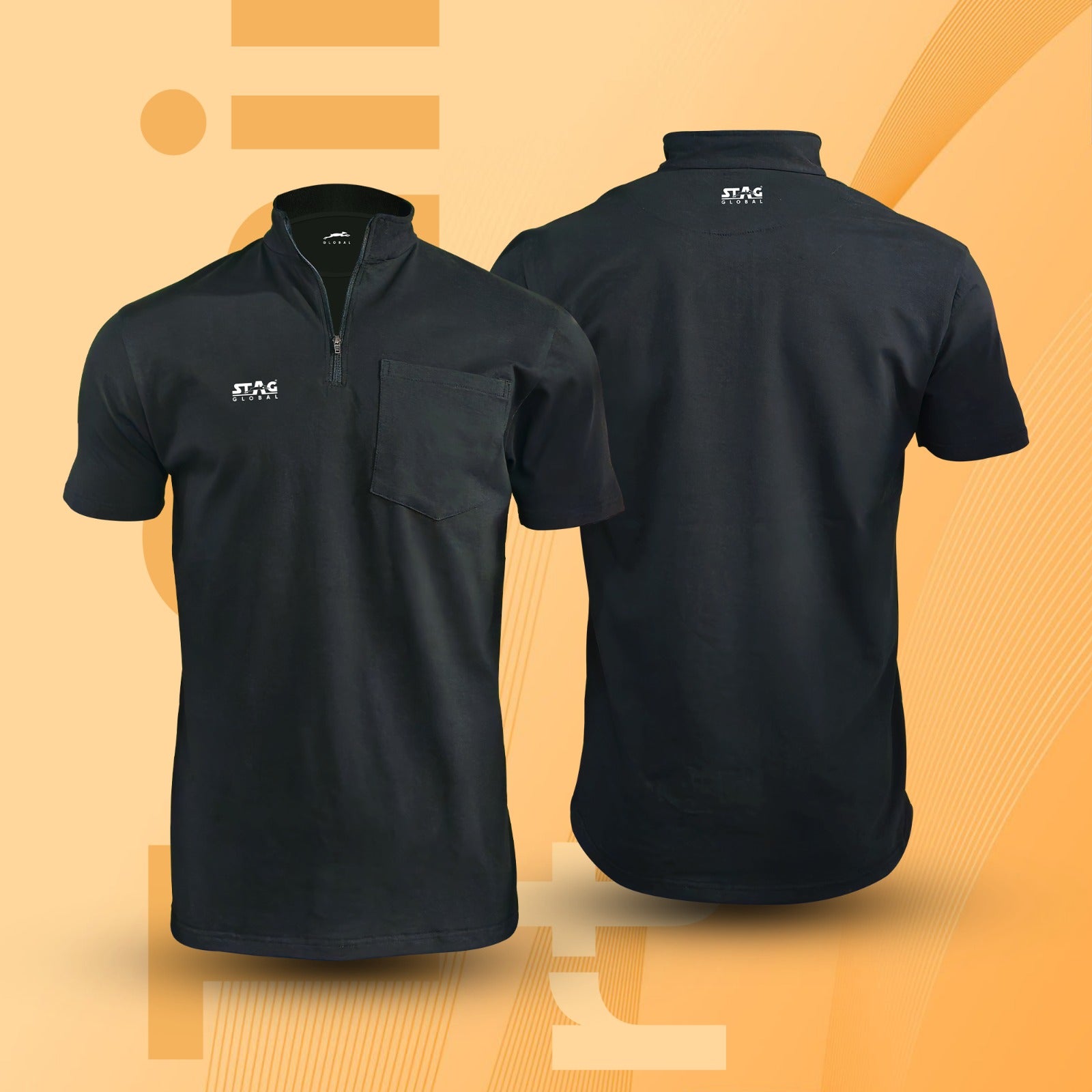This stylish black t-shirt is crafted from 100% pure cotton, offering maximum comfort and breathability. Featuring a half-zip design, a front chest pocket, and a sleek modern fit, it’s ideal for casual wear or team uniforms. The minimalistic "STAG GLOBAL" branding on the front and back adds a professional touch.