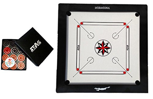 STAG GLOBAL International Carrom Board 4" With Wheels | 29x29 Inch Premium Play Area | 12mm Prelaminated Particle Board
