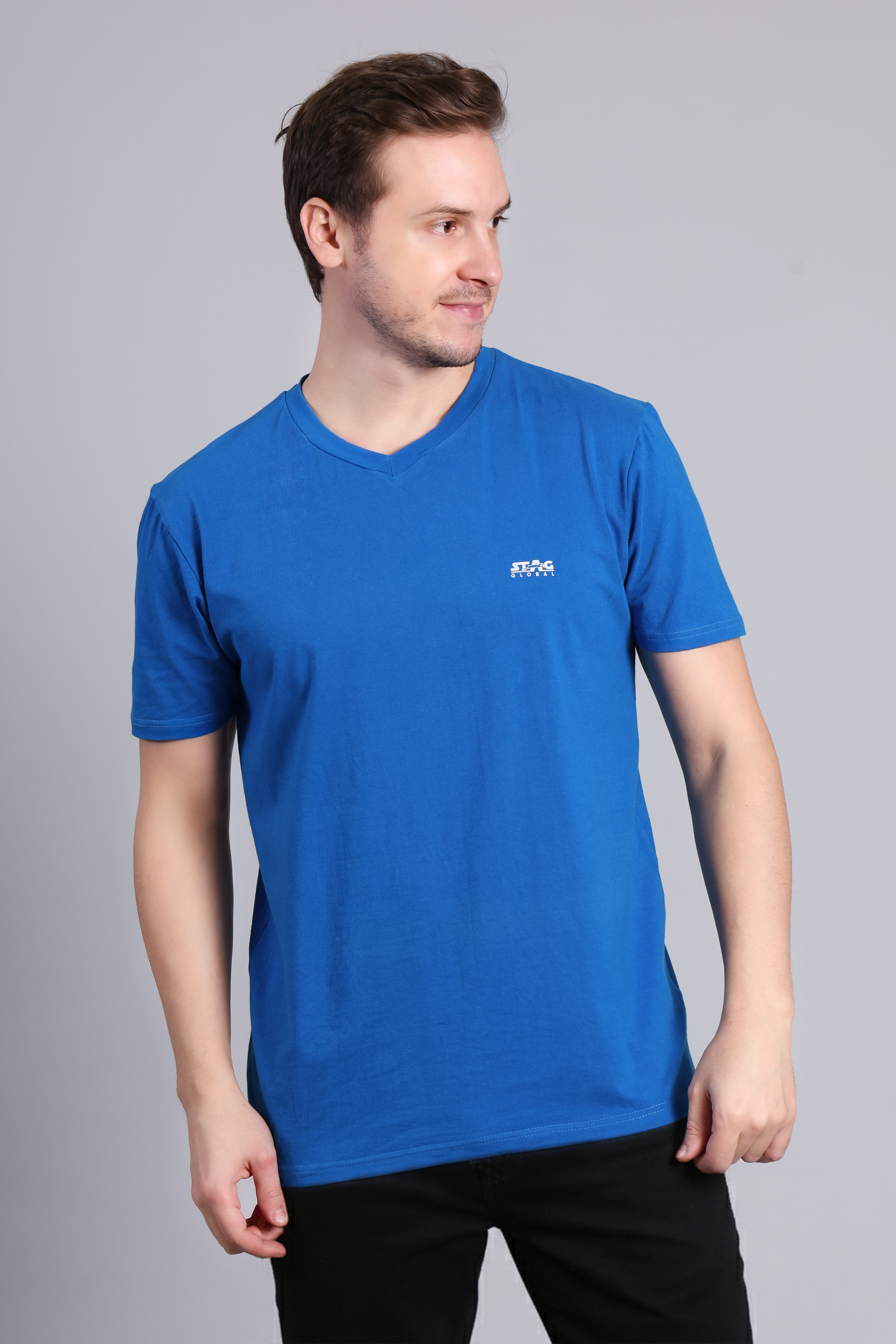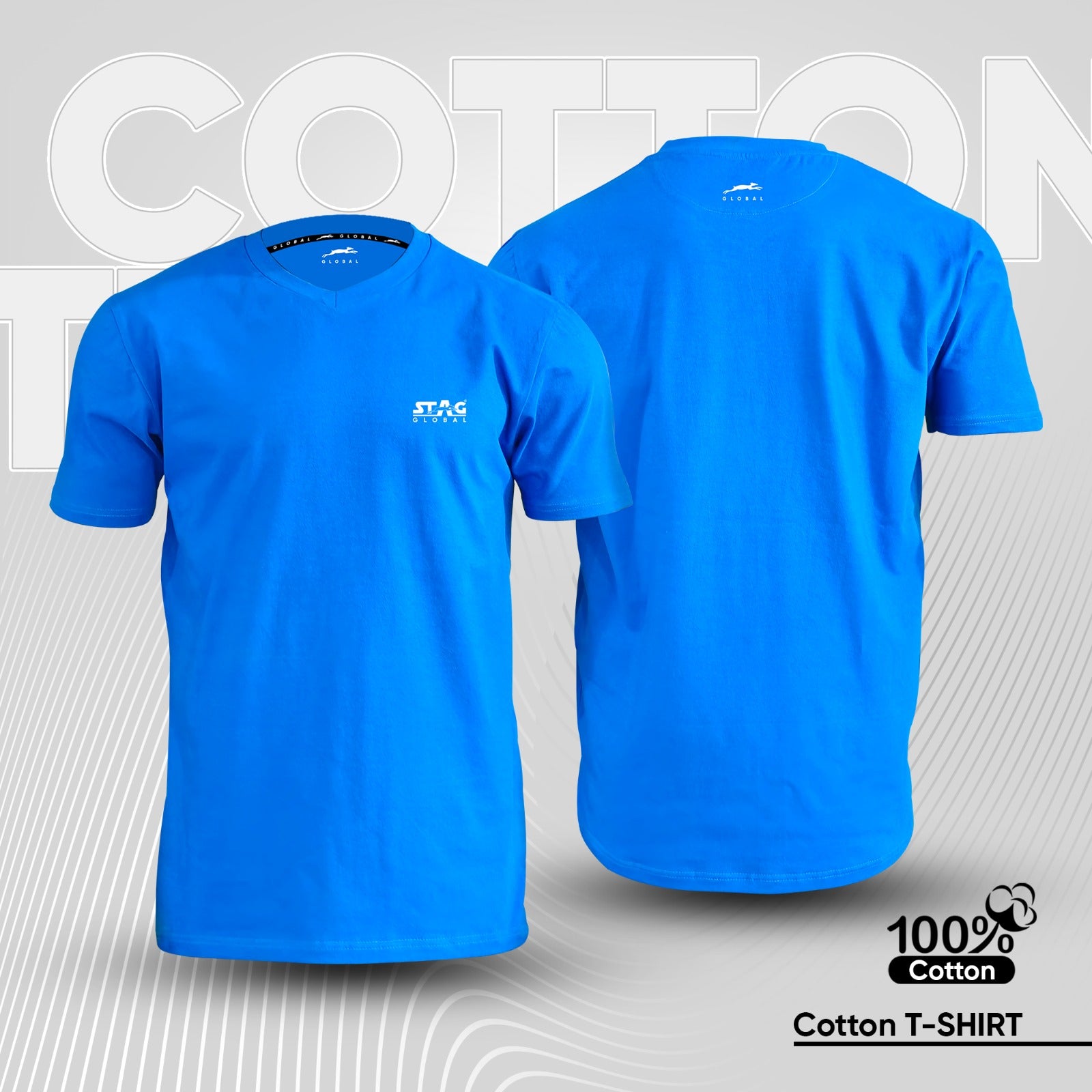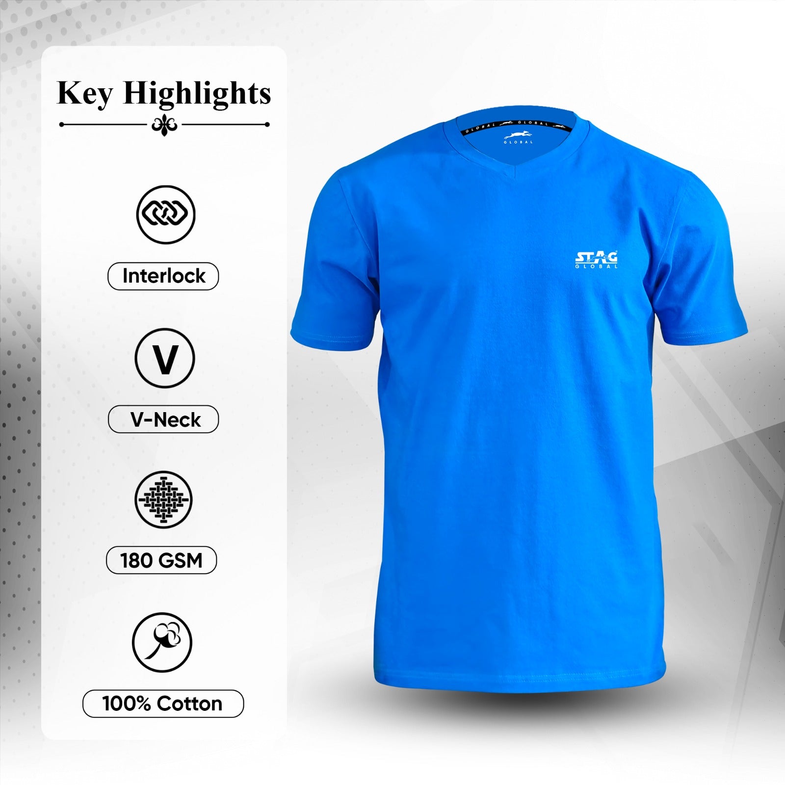 Crafted by STAG Global, this royal blue V-neck t-shirt is made from 100% cotton with a comfortable 180 GSM interlock fabric. Designed for everyday wear, it features half sleeves, a regular fit, and subtle branding on the front and back. Soft, breathable, and stylish—perfect for casual, active, or work settings.