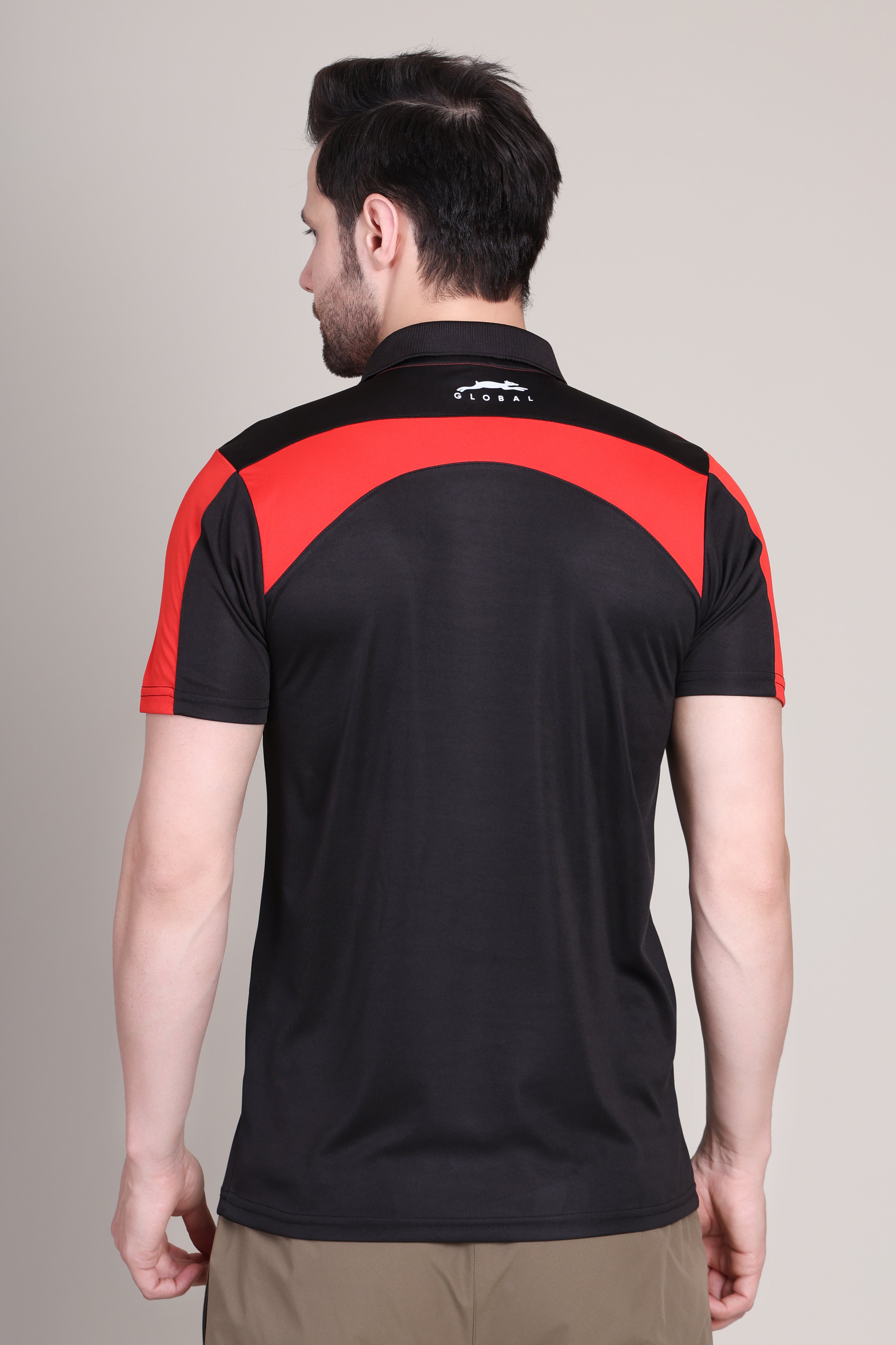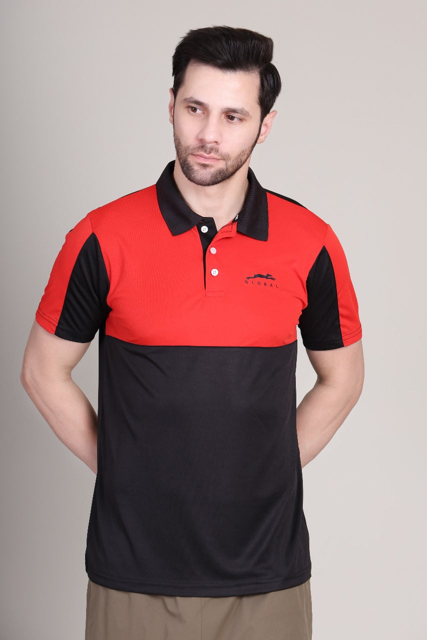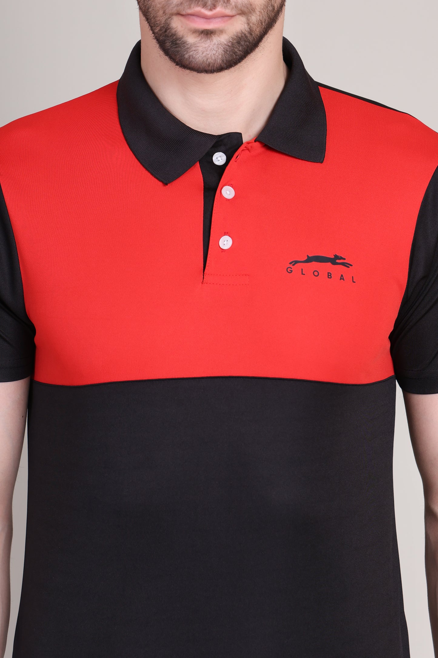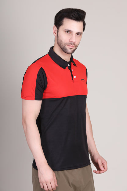 THE STAG GLOBAL Bold Red Athletic T-Shirt crafted from 100% polyester, featuring a Polo collar, half sleeves, and a Athletic fit. Designed for performance and ease of care—it’s machine washable—making it ideal for active use and effortless style
