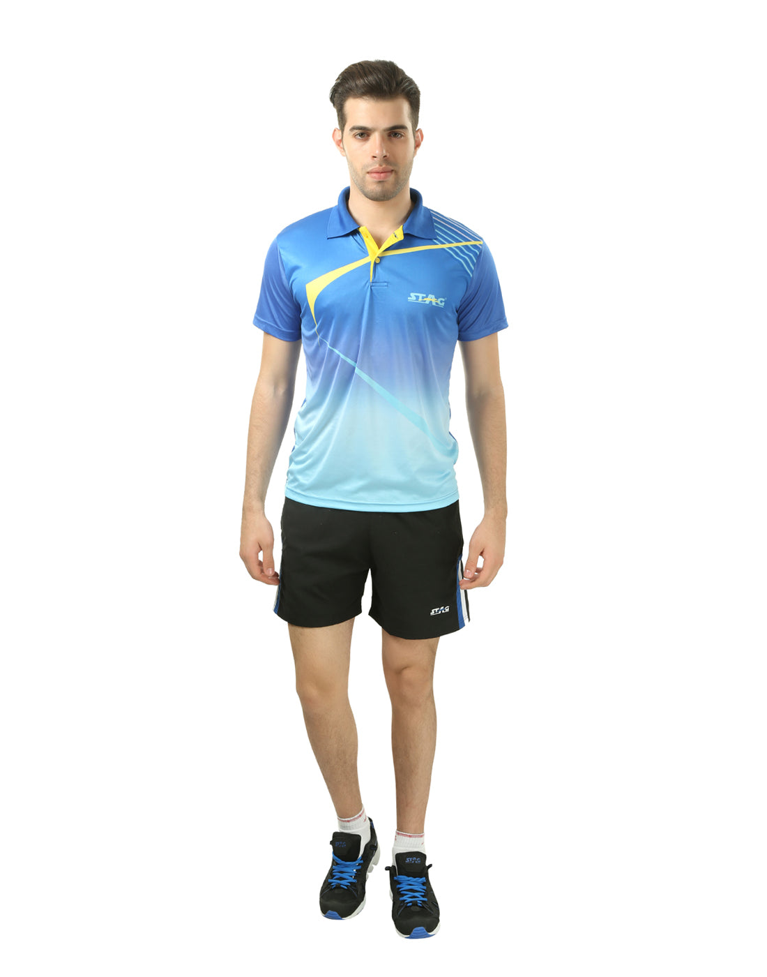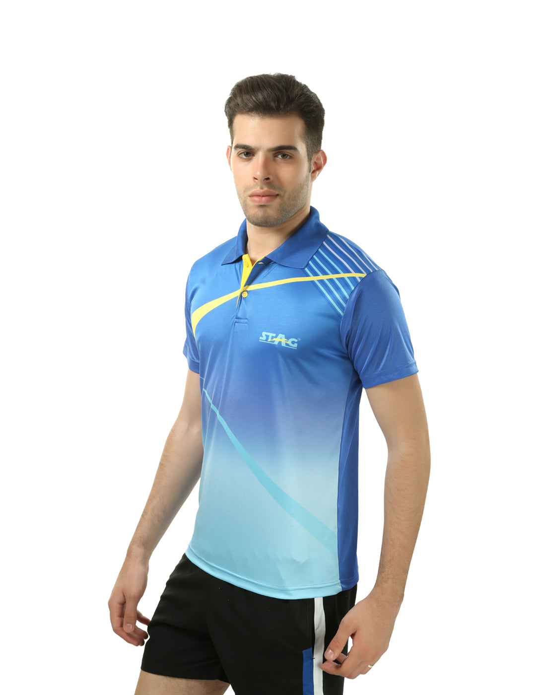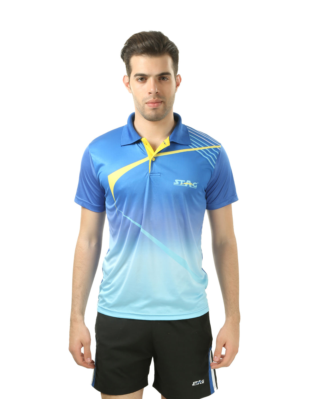THE STAG GLOBAL Super Athletic T-Shirt crafted from 100% polyester, featuring a Polo collar, half sleeves, and Athletic Designed for performance and ease of care—it’s machine washable—making it ideal for active use and effortless style