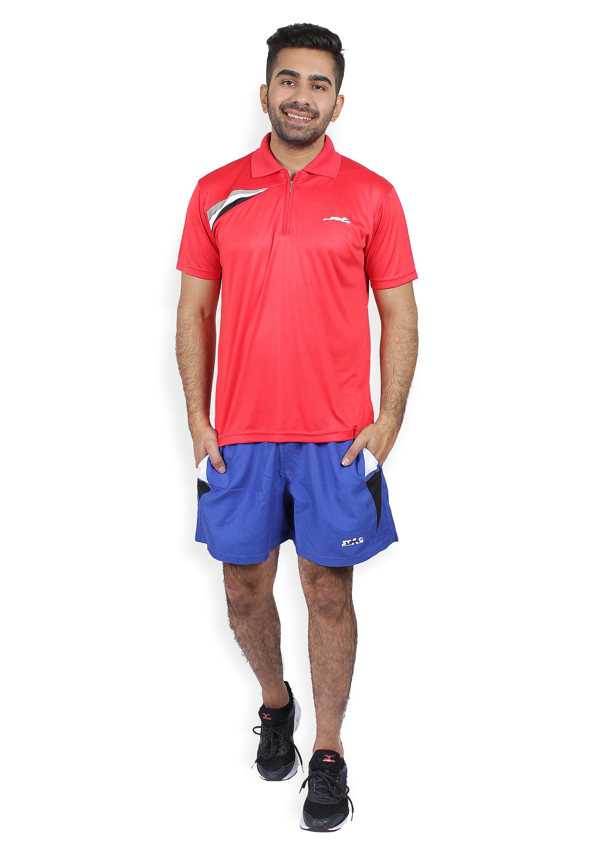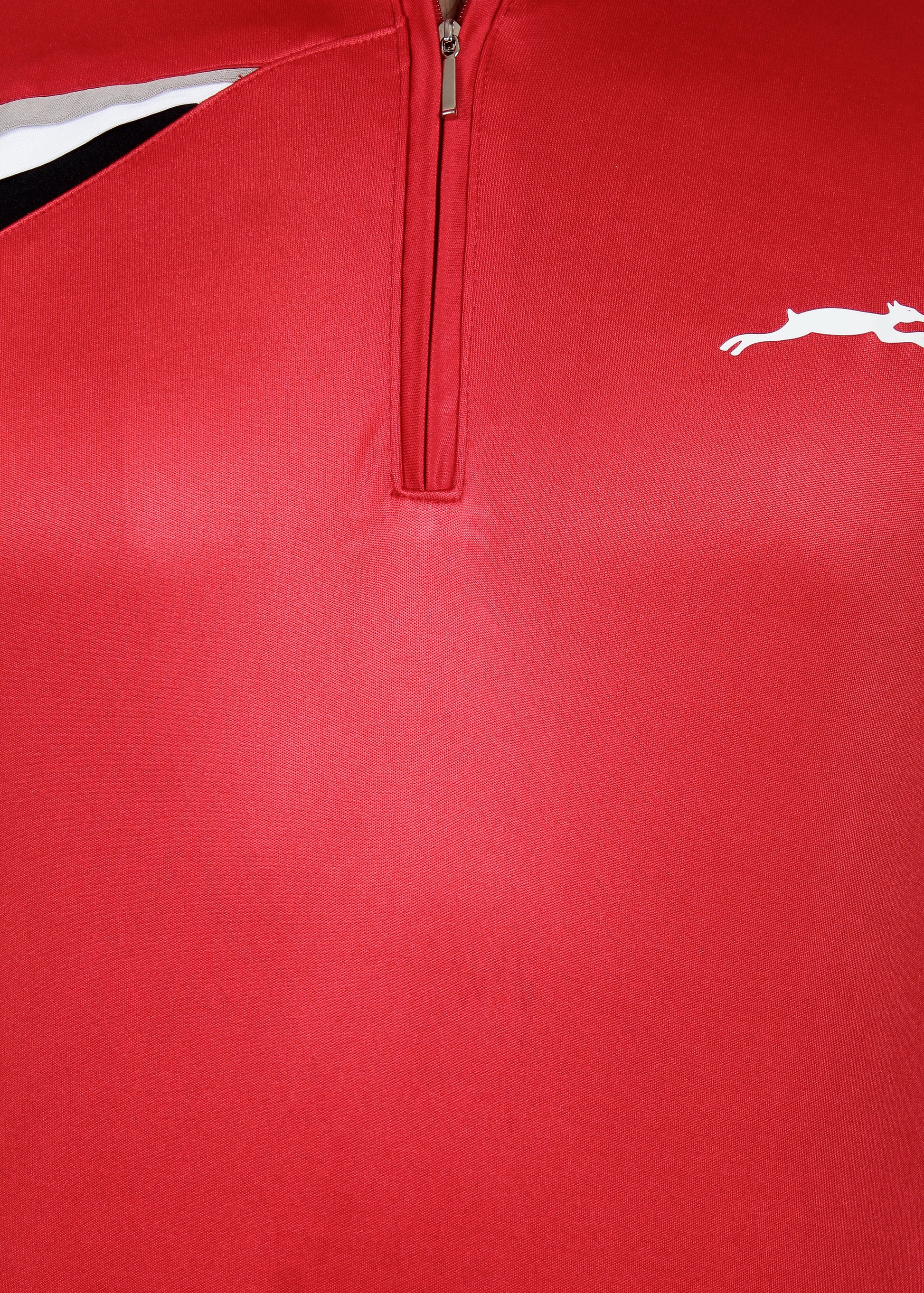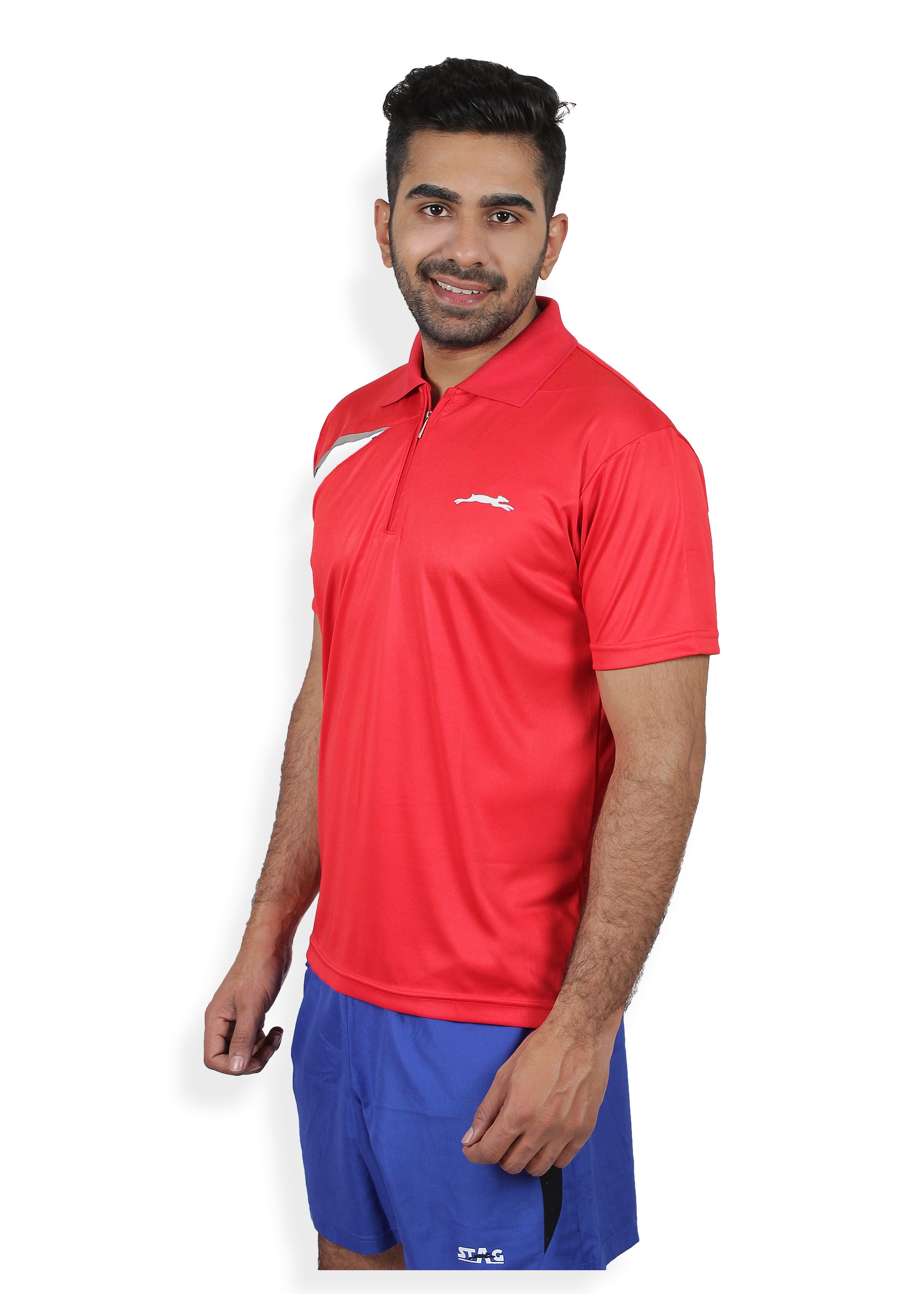 STAG GLOBAL Arrow X Red/Black Polo‑Collar T‑Shirt – A sleek, athletic polo crafted from lightweight, moisture-wicking polyester. Designed for comfort in active wear, it keeps you cool and dry during sports or casual outings. Features a classic collar, front zip placket, and a modern red-and-black color block with the iconic STAG logo.