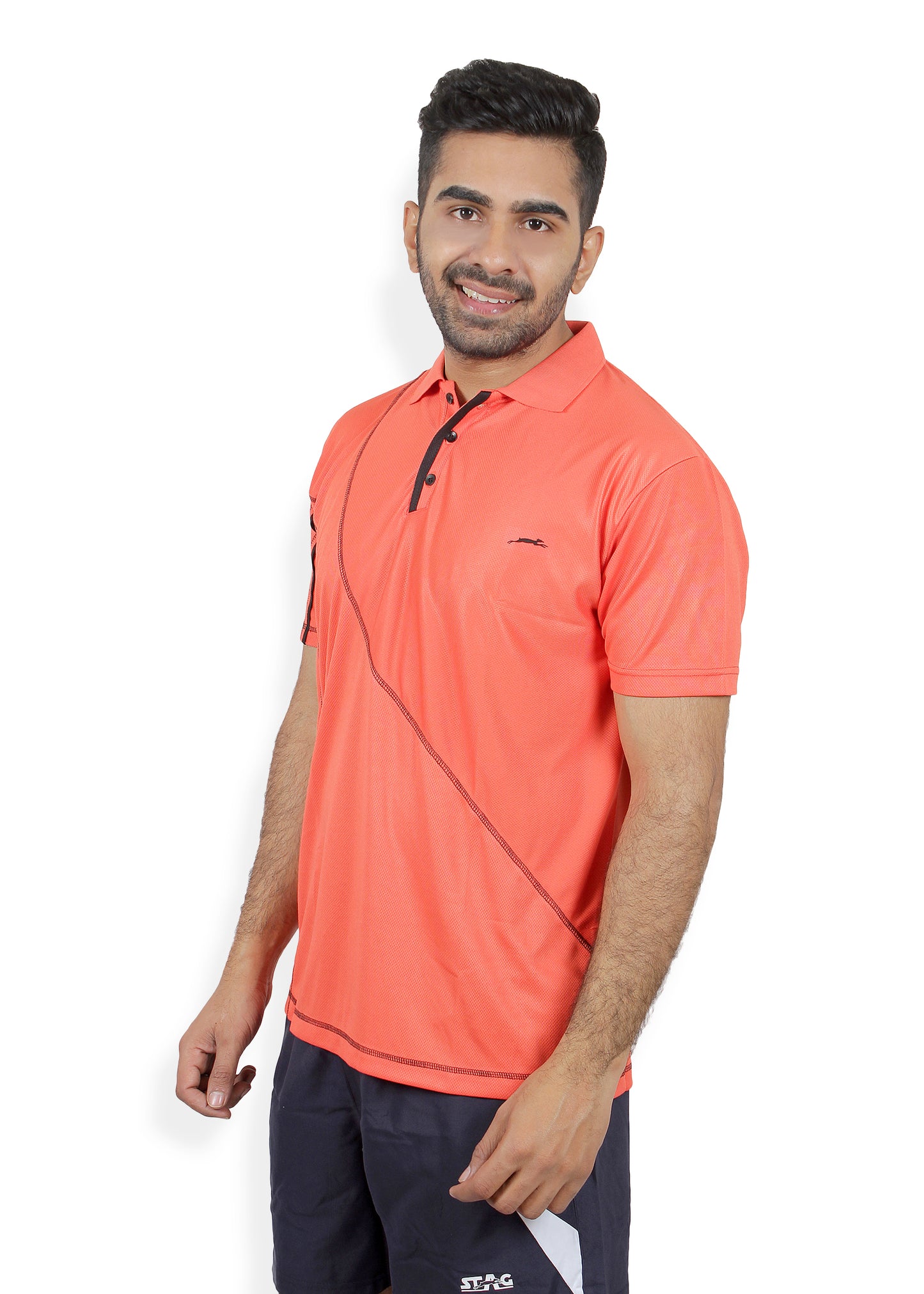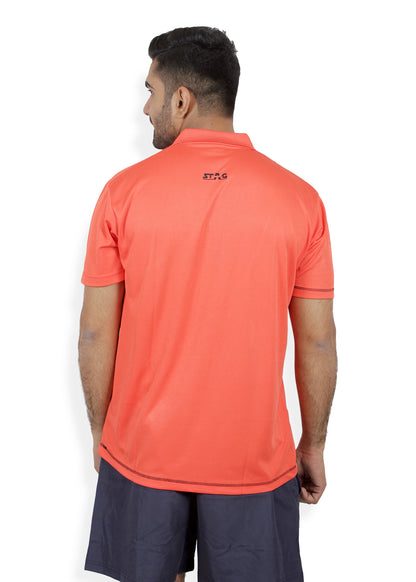 THE STAG GLOBAL Carbon Athletic T-Shirt crafted from 100% polyester, featuring a Polo collar, half sleeves, and a Athletic fit. Designed for performance and ease of care—it’s machine washable—making it ideal for active use and effortless style :