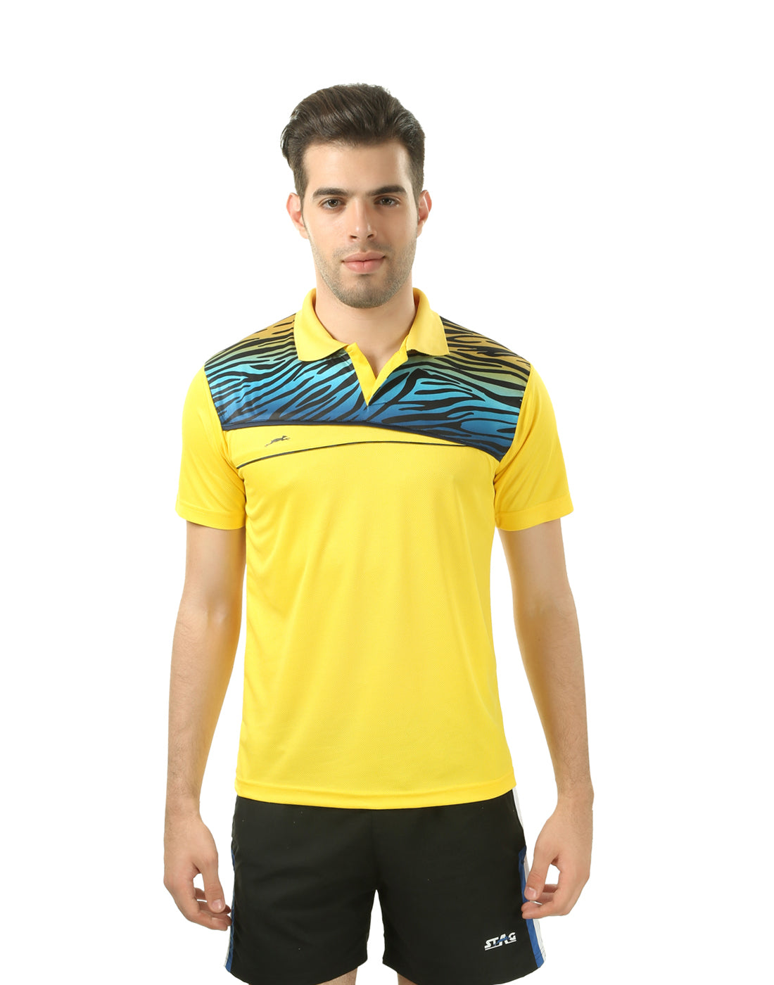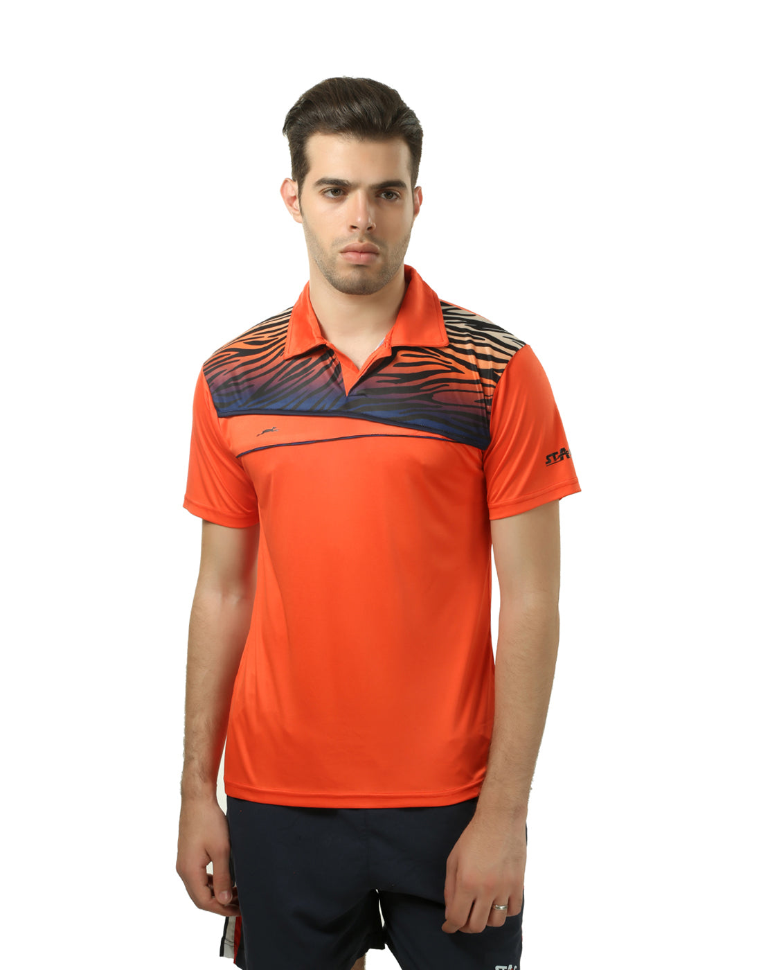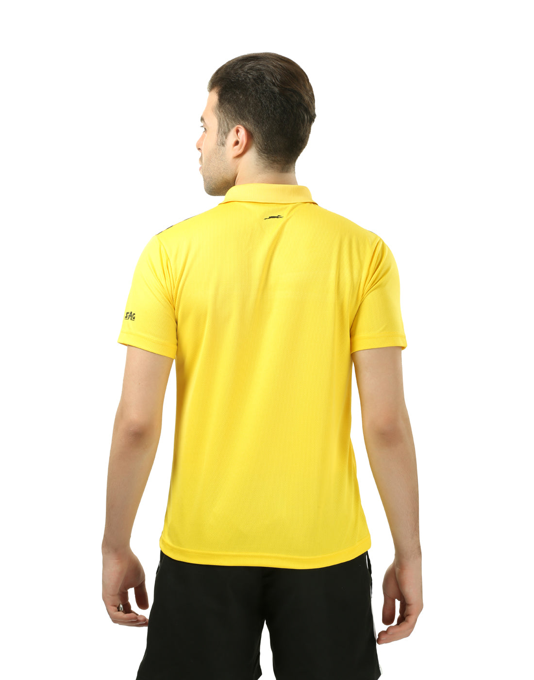 THE STAG GLOBAL Flare Athletic T-Shirt crafted from 100% polyester, featuring a Polo collar, half sleeves, and Athletic fit. Designed for performance and ease of care—it’s machine washable—making it ideal for active use and effortless style