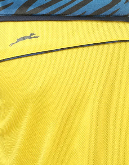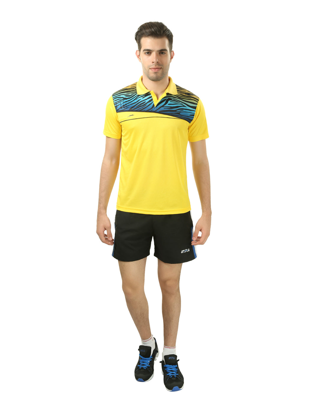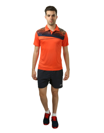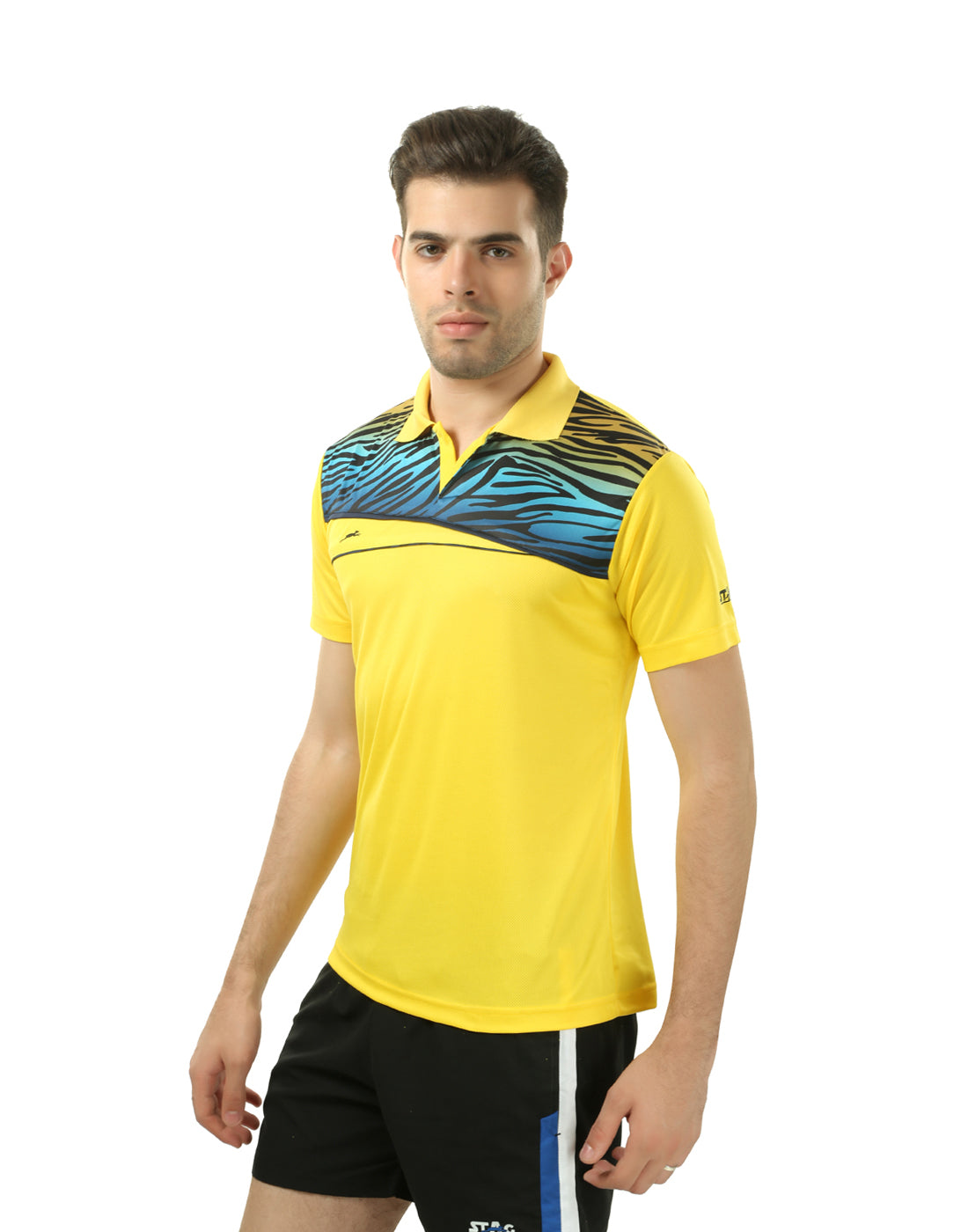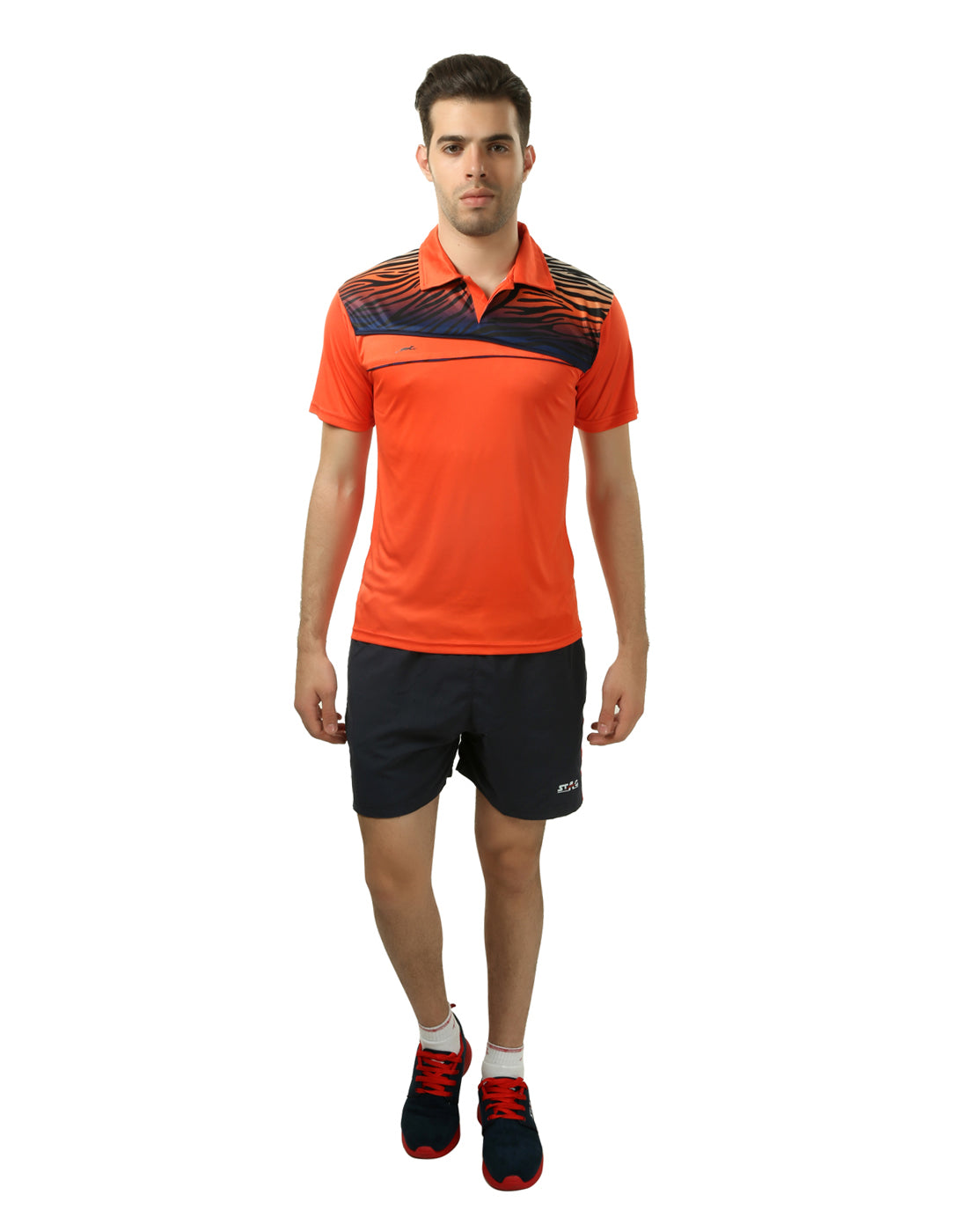 THE STAG GLOBAL Flare Athletic T-Shirt crafted from 100% polyester, featuring a Polo collar, half sleeves, and Athletic fit. Designed for performance and ease of care—it’s machine washable—making it ideal for active use and effortless style