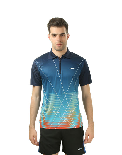 THE STAG GLOBAL Linea Athletic T-Shirt crafted from 100% polyester, featuring a Polo collar, half sleeves, and a Athletic fit. Designed for performance and ease of care—it’s machine washable—making it ideal for active use and effortless style