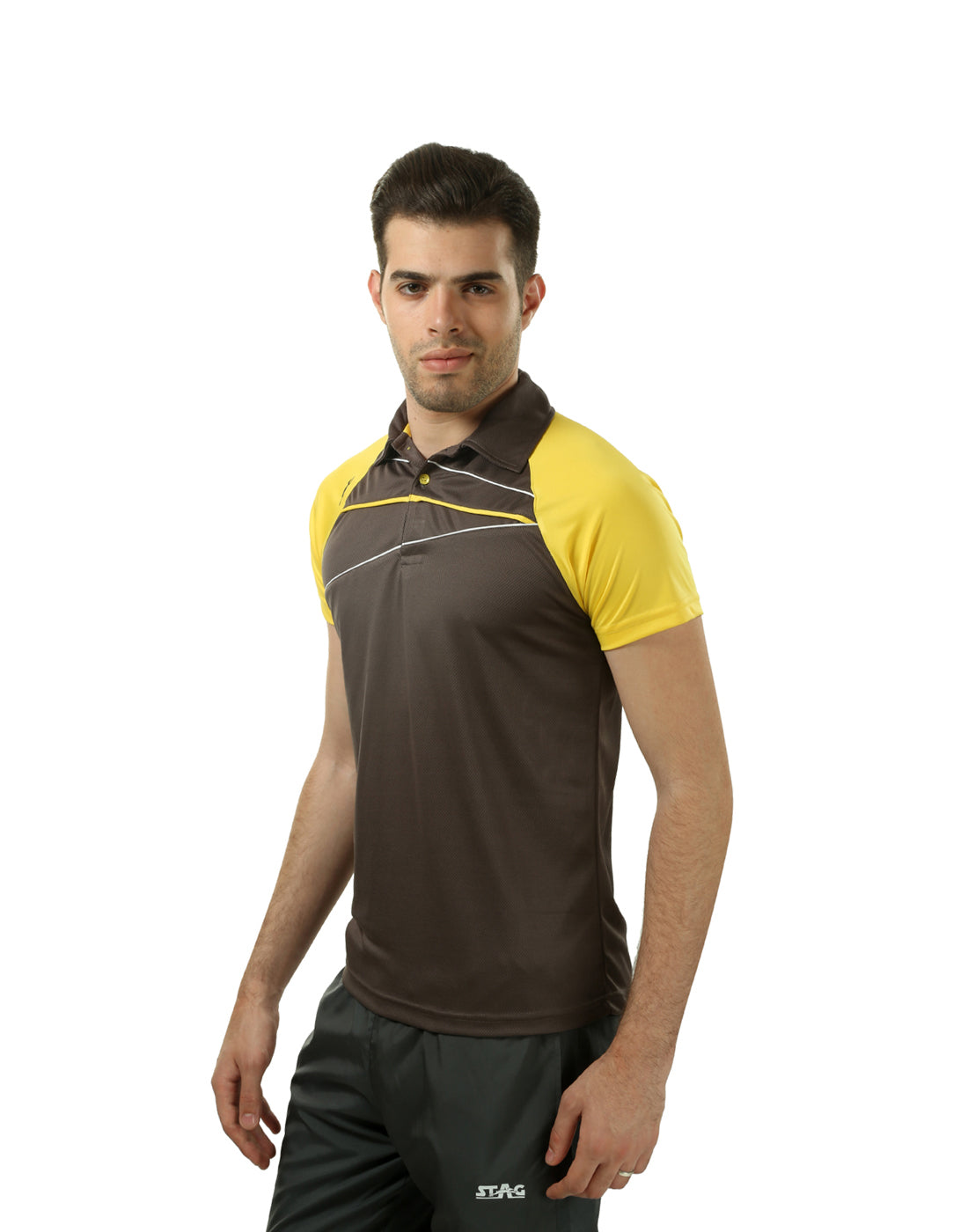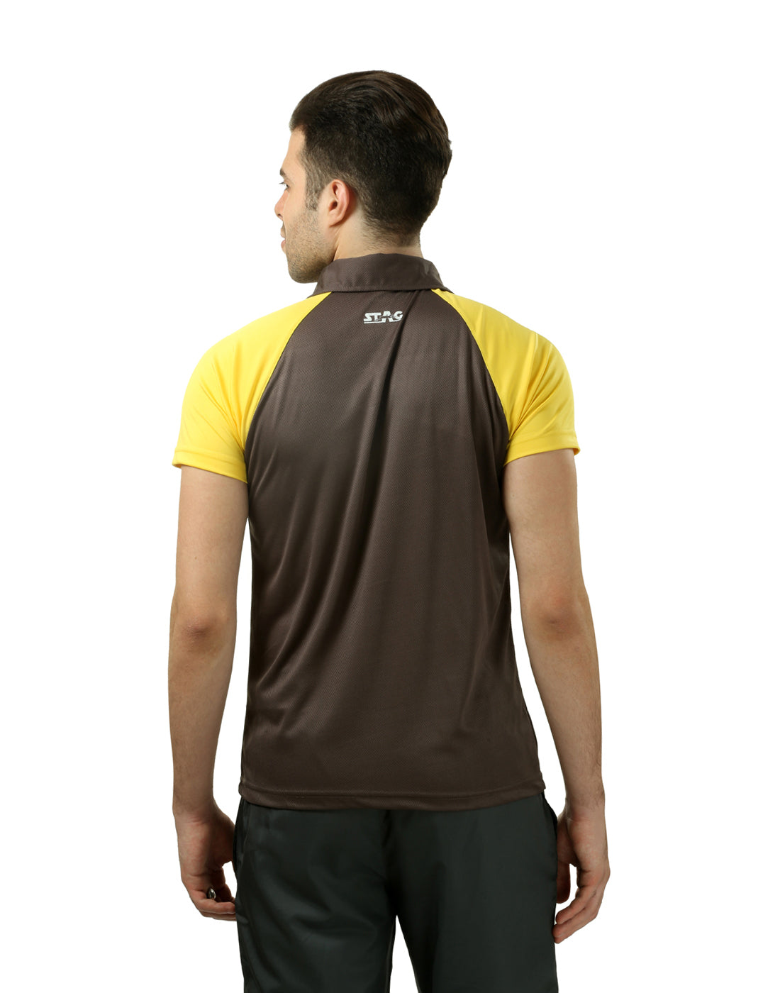 STAG GLOBAL Flare Dual-Tone Sports T-Shirt, crafted for active men who demand both performance and style. This athletic tee features a bold combination of deep brown and vibrant yellow, giving it a dynamic, high-energy look. The lightweight, breathable fabric offers excellent moisture-wicking properties to keep you cool and dry during intense workouts, outdoor activities, or everyday wear. Designed for comfort and mobility, it’s the perfect blend of functionality and modern sporty appeal.