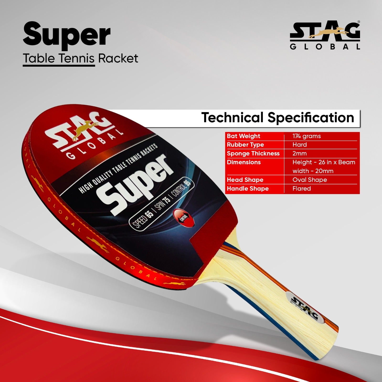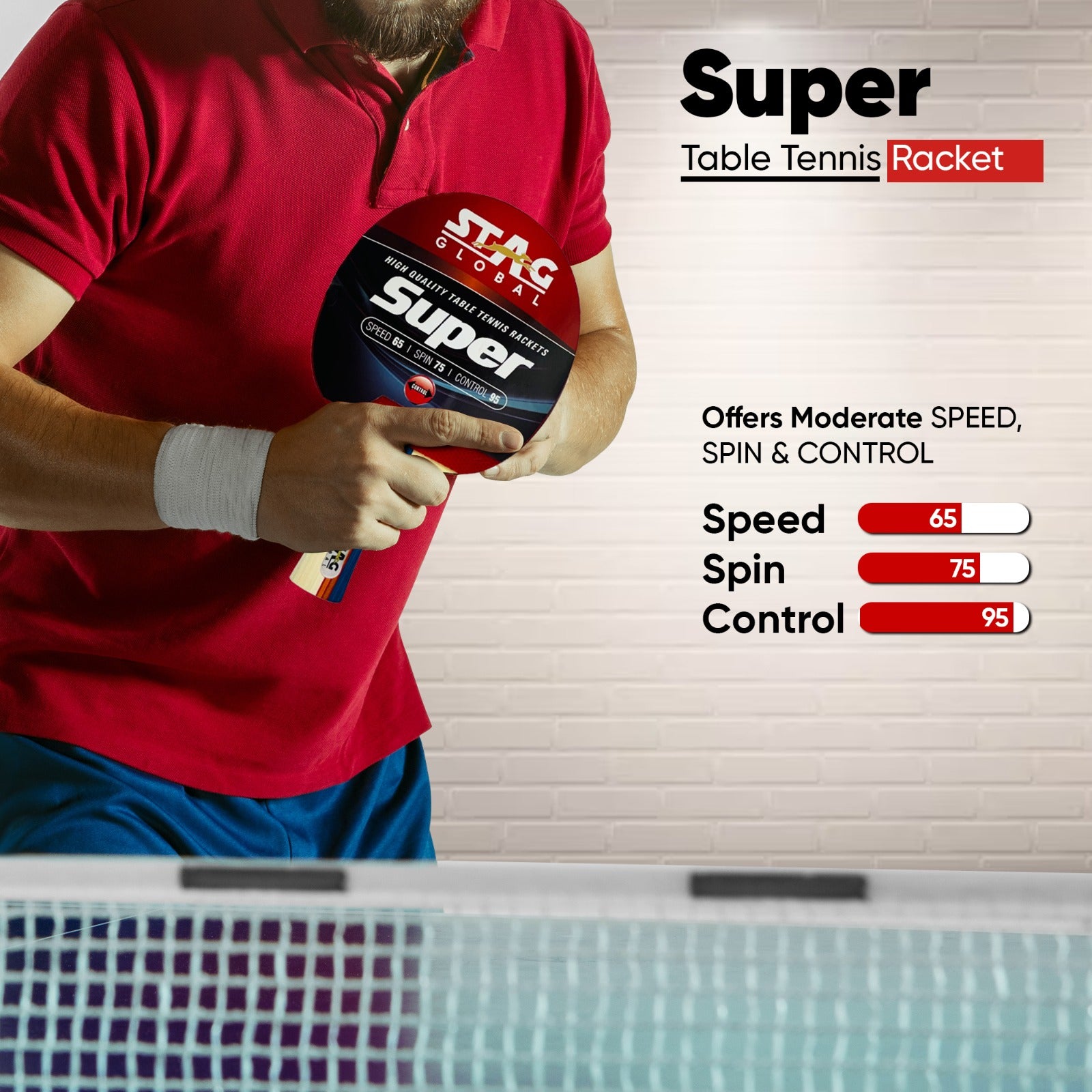STAG GLOBAL Super Table Tennis Racket | Speed 65 | Spin 75 | Control 95 | ITTF Approved Rubber