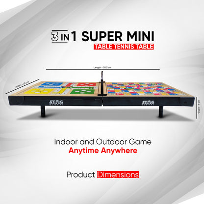 Experience the thrill of table tennis wherever you go with the STAG Super Mini Table Tennis Set. Designed for portability and instant setup, this table measures just  making it perfect for compact spaces. Whether you're at home, in the office, or on vacation, enjoy competitive play on any flat surface with a minimum area of  With its sturdy construction and official STAG branding, this mini table delivers big fun in a small package!