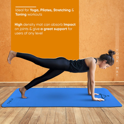 STAG GLOBAL Yoga Mantra Plain Blue Mat With Bag, 4MM Thickness